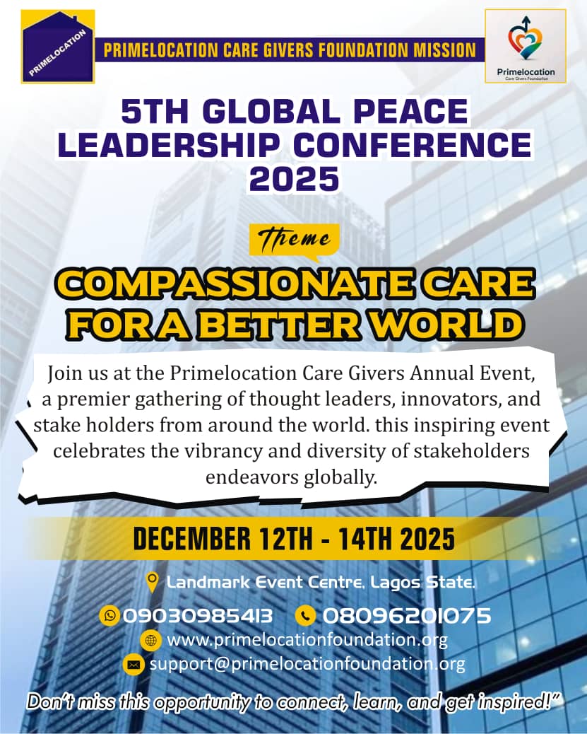 Prime Location Care Givers Foundation is proud to invite you to 5th global peace leadership conference , a premier gathering of global education stakeholders and international experts. This summit fosters high-level discussions, knowledge sharing, and collaboration, ultimately shaping the future of international education in Africa. By participating in the 5th global peace leadership conference we strengthen our network, stay updated on industry trends, and contribute to co-creating a brighter future for education and leadership in our region.